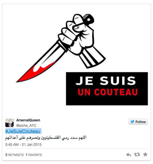 #JeSuisCouteau hashtag was used in support of the terror attack on the Tel Aviv bus, rather than to condemn it." http://bit.ly/1uITJLU -