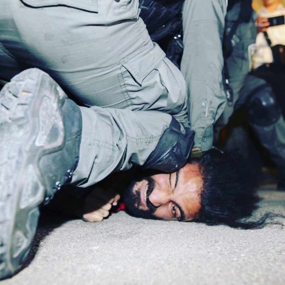 This is how dozens of Israeli soldiers arrested a defenceless Palestinian man who was participating in a peaceful demonstration in Sheikh Jarrah neighbourhood in occupied