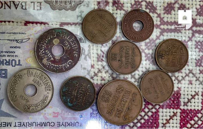 #CoinOlderIsrael#Umayyad coin of#Byzantine style,by Caliph#AbdAlMalek (685-705 AD). On the reverse, to the left of the letter,"M"in Arabic says فلسطين"Filistin",#Palestine, to the right in Arabic بإلياء "BiIlya", (coined) in Ilya,by the Roman#Jerusalem Aelia Capitolina. pic.twitter.com/6GJsz0G2rR