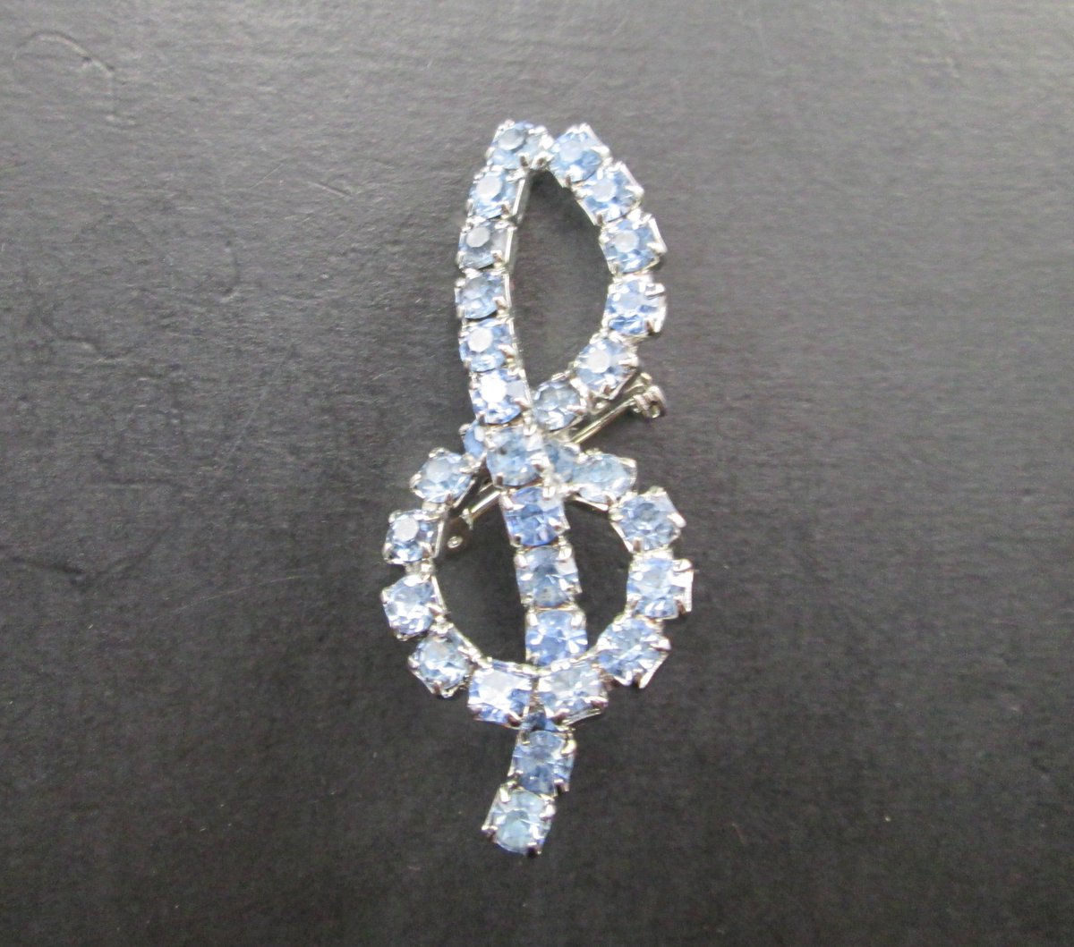 A great gift for the musician in your life - Vintage Blue Rhinestone Silver Tn Treble Clef Brooch Pin at SecondhandNel https://etsy.me/2Loi5nO via