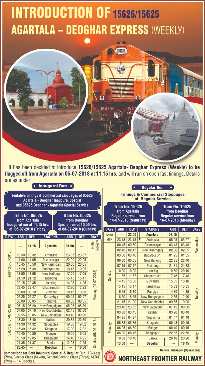 #Tripura to get new train connecting Deoghar in#Jharkhand The train will establish direct connection between Tripura Sundari temple in Agartala and Baidyanath Temple in Deoghar@BjpBiplab@RailMinIndia@rajengohainbjp pic.twitter.com/xCZg7m7ZJf
