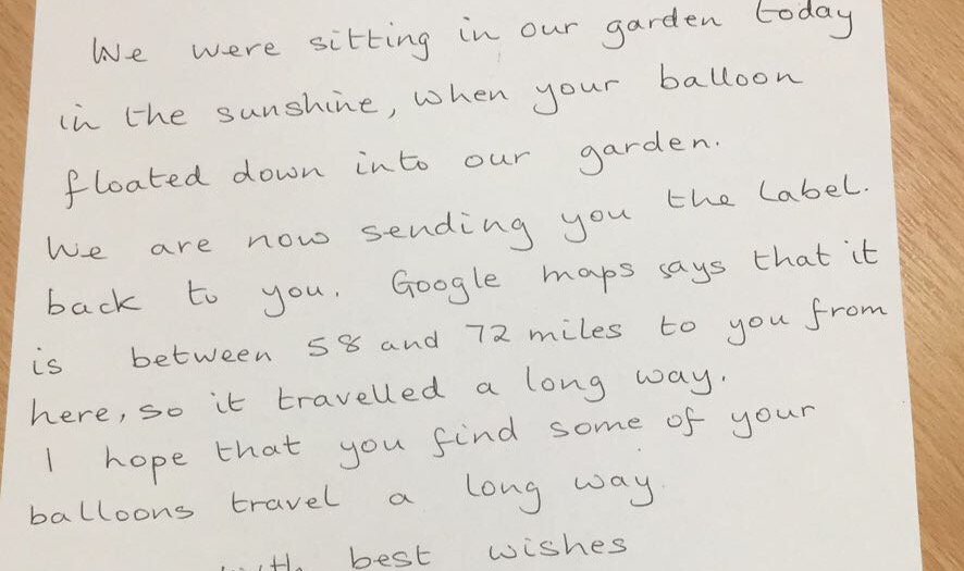 First response from our balloon release. We have had several since and one from France!