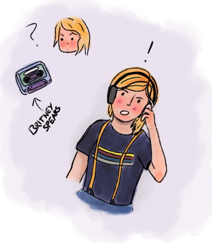 lil comic of thirteen just straight up vibing to britney and yaz having a gay moment