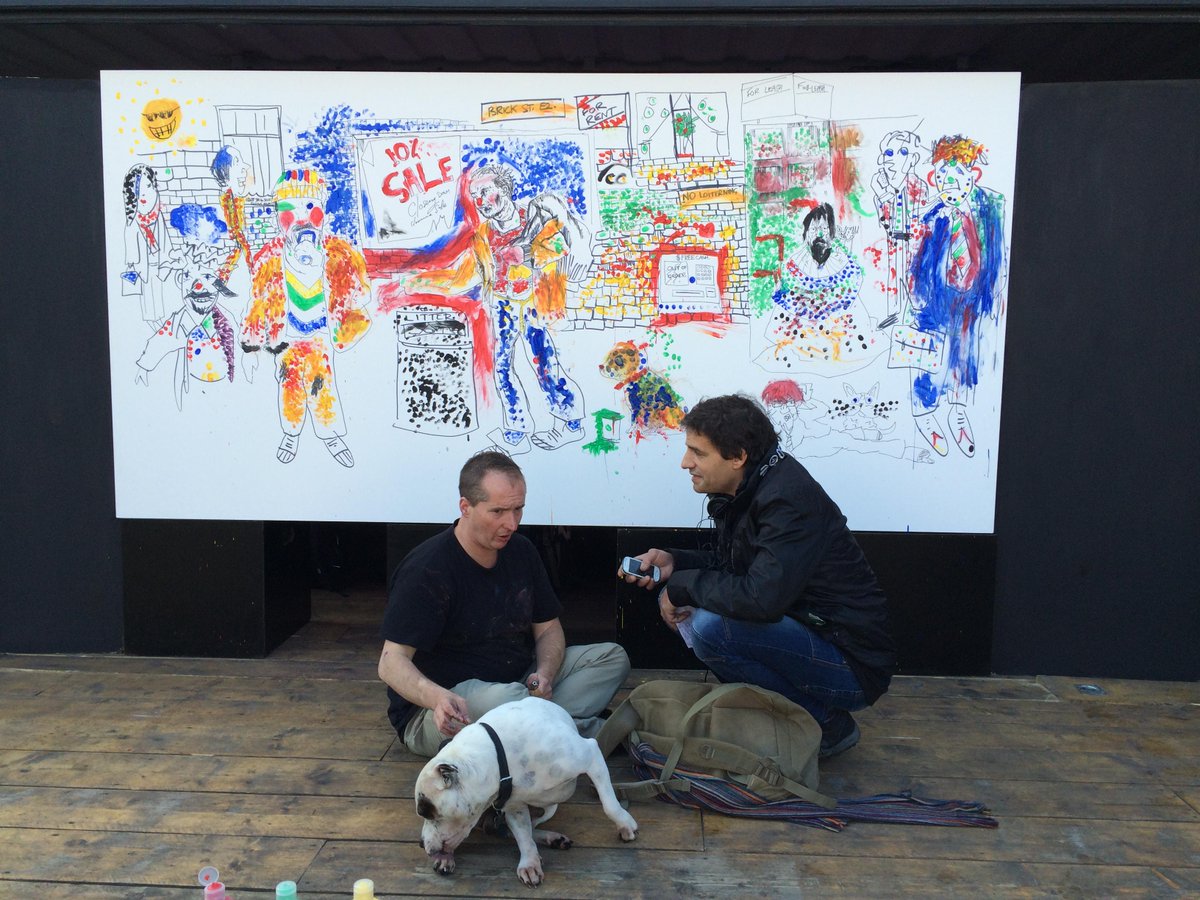 #JohnDolan & George the dog creating art@boxpark for@Tell_StreetLink#worldhomelessday2015pic.twitter.com/dq3B1udT2u