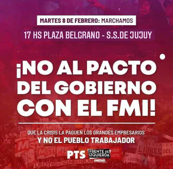 #Jujuy también marchamos contra el acuerdo con el FMI. Basta de pagar la deuda a costa de más ajuste y hambre para el pueblo trabajador! pic.twitter.com/DzpbFh3ECk