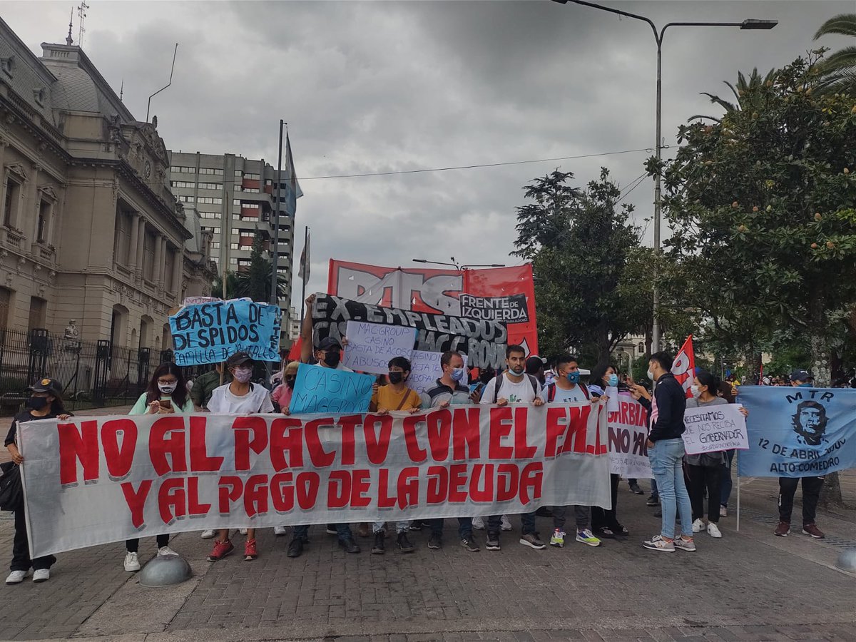 #Jujuy nos llegan las imágenes d una enorme movilización d organizaciones políticas y sociales contra el acuerdo con el FMI y d una cabecera q llena de orgullo compuesta por trabajadorxs despedidxs d Garbarino, Casinos Mac-Group y Ledesma pic.twitter.com/fv9TFNG6oZ