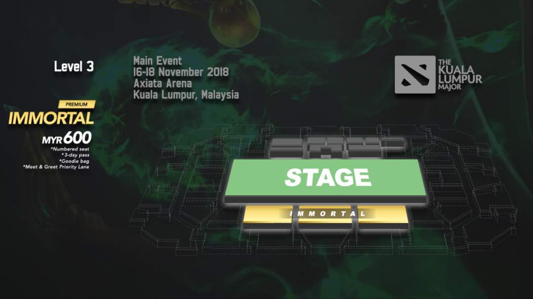 Letting go 2x Immortal tickets to KL Major Dota 2. Price: RM 550 (can nego) Help RT