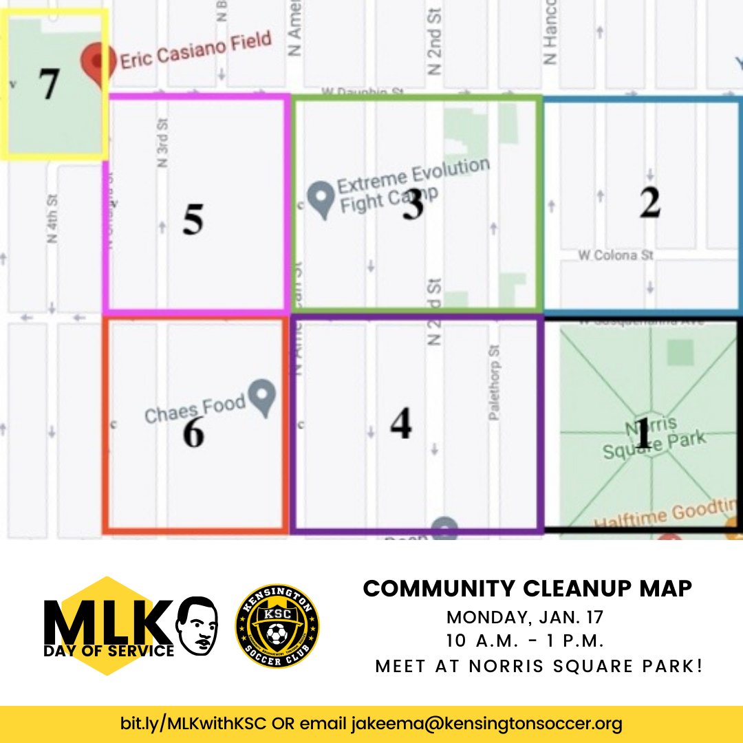 Spread the news and join Kensington Soccer Club as we come together to clean up our neighborhood on MLK Day!