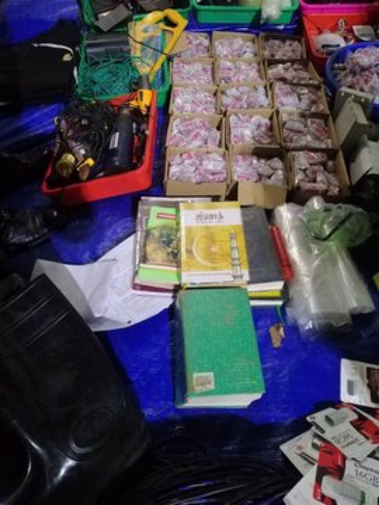 #Kalmunai (Muslim majority town in eastern Sri Lanka) where the#ISIS has a massive cell with ready to launch material of all types - suicide vests, drones, explosives, wires and whatnot. GRAPHIC 18+ Sadly religious books coexist with bombs.pic.twitter.com/2bvvNRPz3t
