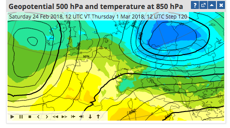 #Märzenschnee liegt in der#Luft. Von#Donnerstag bis#Sonntag liegen wir +/- an der Grenze zwischen Kalt- & Warmluft im Bereich vom#Jetstream. Am#Montag (und/oder am#Mittwoch) könnte aber#Kaltluft (blau) wieder#Flocken bis ins#Flachland bringen! ^bucpic.twitter.com/zsCsxjDOyc -
