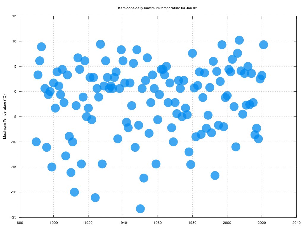 With a ~noon high of 9.3°C, today is #Kamloops's 3rd warmest Jan 2nd since records began in 1890. pic.twitter.com/oLl7fwj1HQ