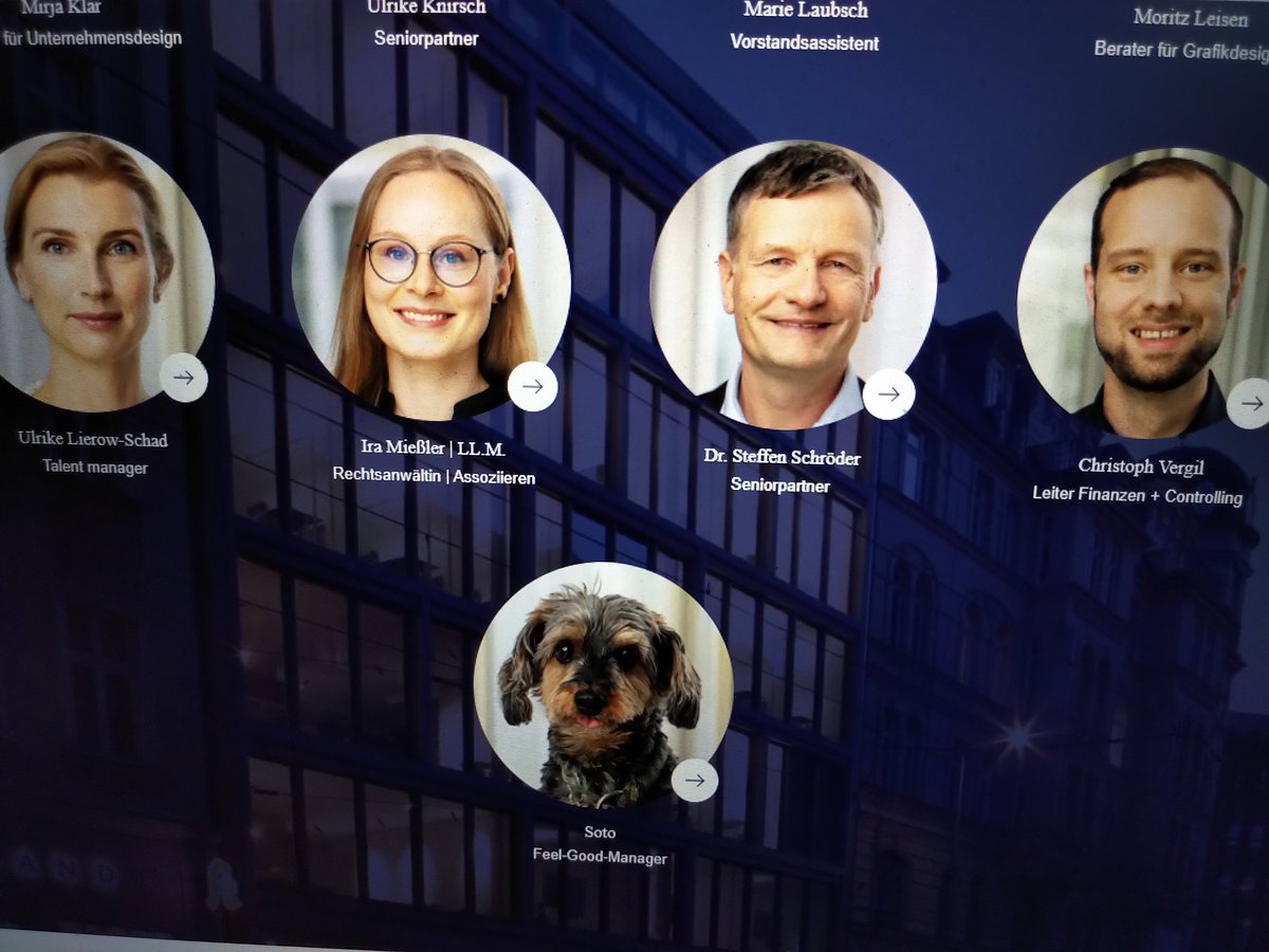 #Kanzleien-Check so findet:#DierksCompany hat einen#Feel-Good-Manager, bellen kann und Soto heißt@BV_Buerohund@wiwopic.twitter.com/3pEJ8Ga65U