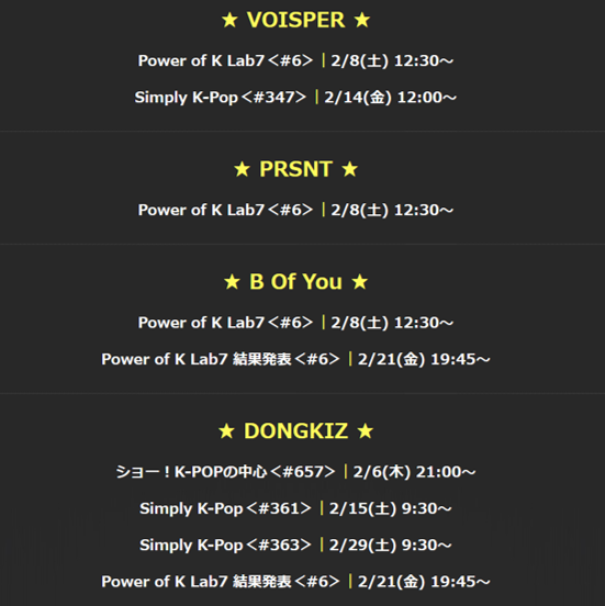出演アーティストの関連番組を2月多数放送