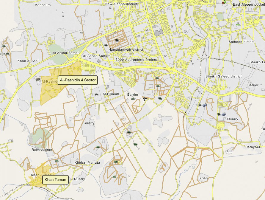 #Syria#Aleppo update#SAA,#SyAAF continue their bombardment in the areas of Rashidin §4 and of important terrorist hub#KhanTouman pic.twitter.com/uBaKHuMgKK