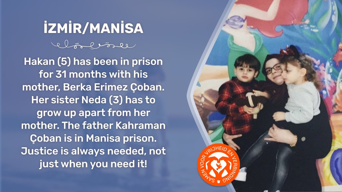 Hakan(5) has been in jail for 31 months with his mom, Berka Erimez Çoban.Her sister Neda (3) has to grow up apart from her mom. Dad Kahraman Çoban is in Manisa jail. Neda needs her mom as well.