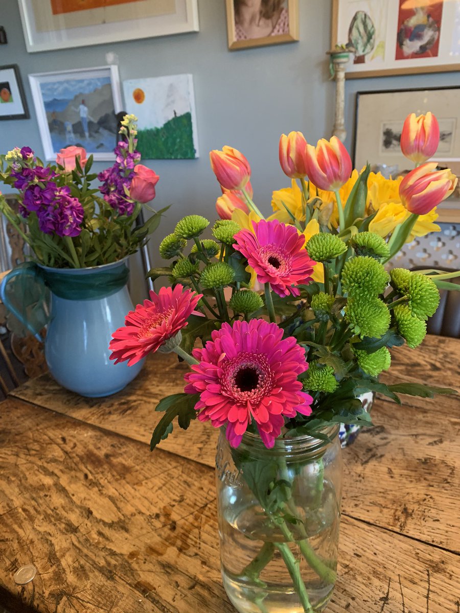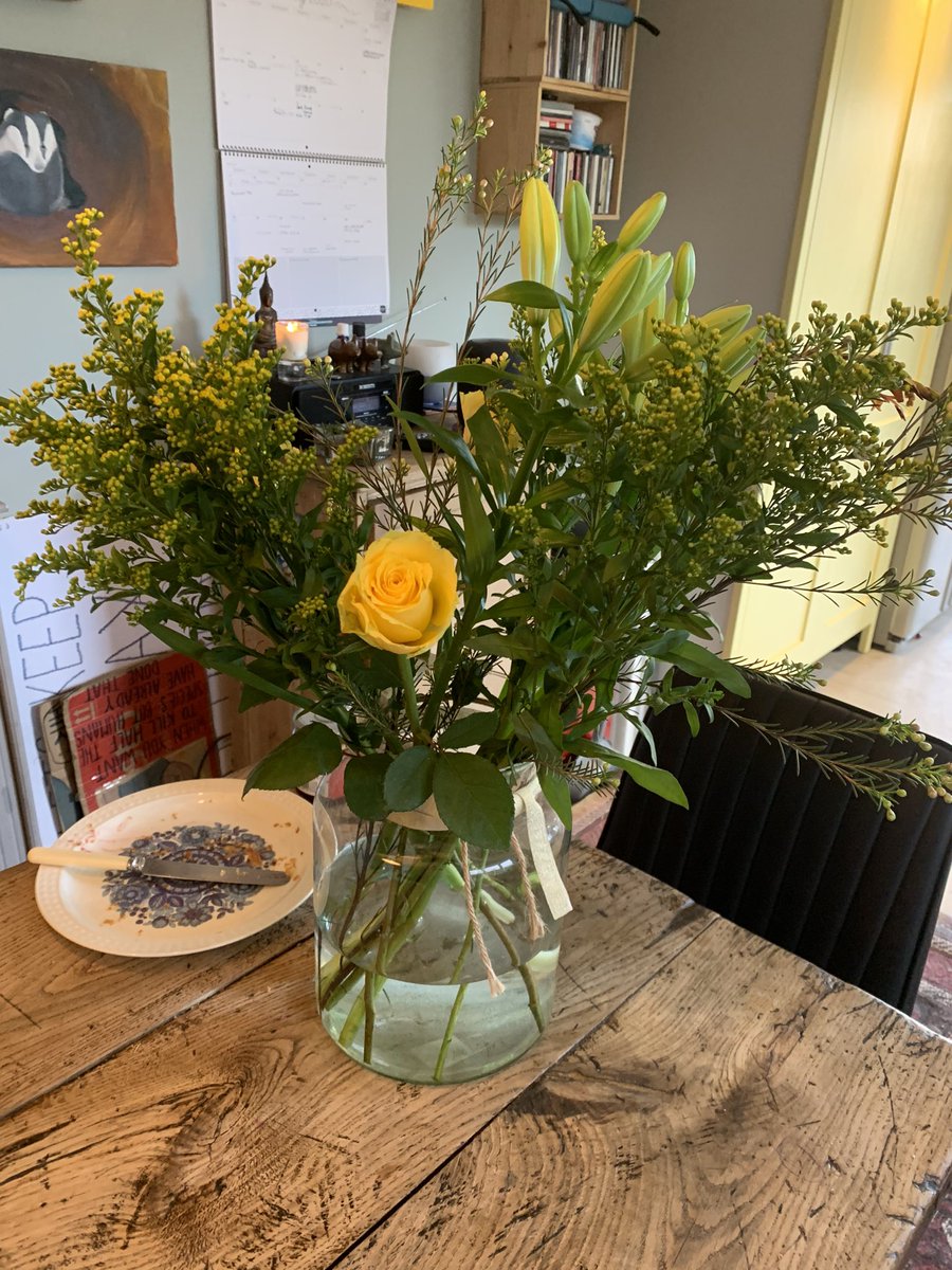 When you come downstairs to this... I loved arranging my flowers from my work support team! Feeling so much better with this joy in my life. Being freelance but not alone!