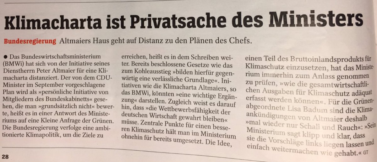 Die #Klimacharta von@peteraltmaier ist nichts als Schall und Rauch, was mir nun auch sein eigenes Ministerium,@BMWi_Bund bestätigte. Kein einziger der Punkte wird umgesetzt oder für relevant gehalten. Wir brauchen endlich Taten statt PR-Aktionen bei dieser BREG!@derspiegelpic.twitter.com/u4TQzfjymw