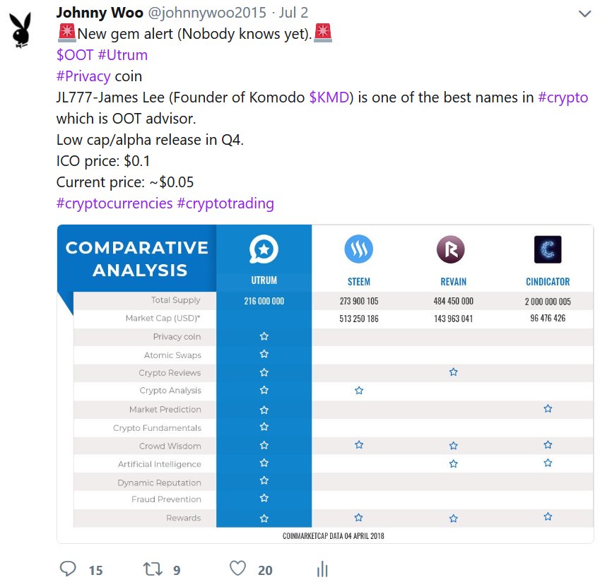 #Utrum$OOT project and it's extremely undervalued. Low cap/low circ supply/low price... what are you waiting for? Don't buy at hype buy at blood & fear.#Komodo$KMD$BTC$ETHpic.twitter.com/liLZID013a