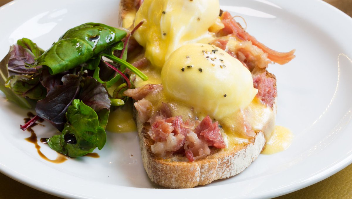 Brunch served from 9-5, our perfect gooey eggs with maple smoked ham hock are our signature dish!