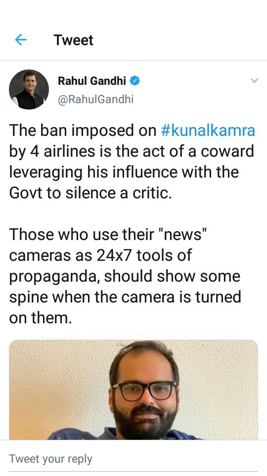 @kunalkamra88 has made jokes on@RahulGandhi and#MMS many times... Its still available on internet BUT HERE HE IS STANDING UP FOR RIGHTS OF AN INDIVIDUAL... we dont need an orator we need a democratic leader Well done#RahulGandhi#Kunalkarma https://twitter.com/RahulGandhi/status/1222540873587556353 … -