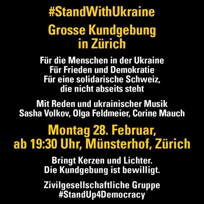 #StandWithUkraine -#Kundgebung heute Abend auf dem Münsterhof in Zürich. pic.twitter.com/7cTU7CtLy1
