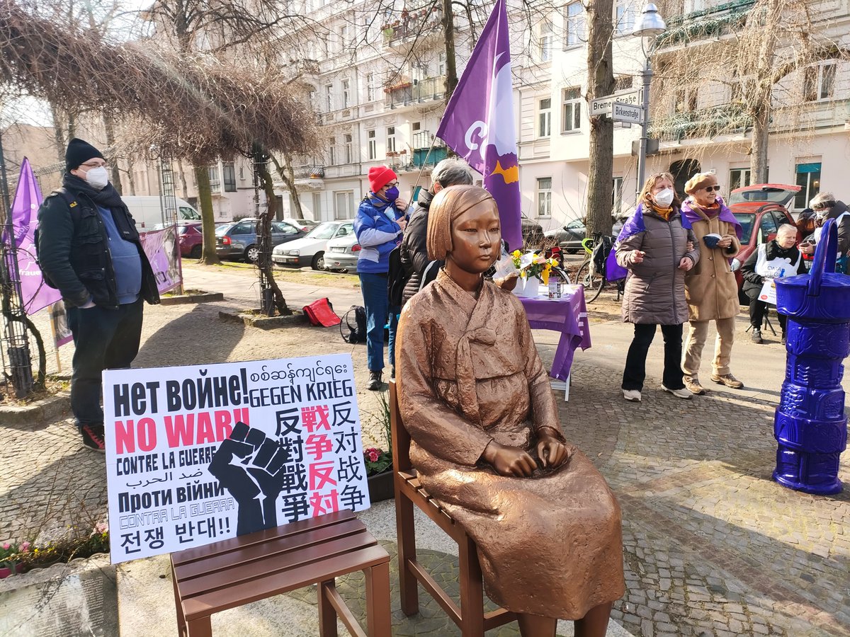 #Kundgebung am#Friedensstatue mit dem@FV_Courage , Solidarität international, die@MLPD und wir als Rebell. Gemeinsam haben wir protestiert gegen Gewalt an#Frauen , gegen#Krieg und wollten den 8. März als#Frauenkampftag bekannt machen.pic.twitter.com/XEyv8tlz1K