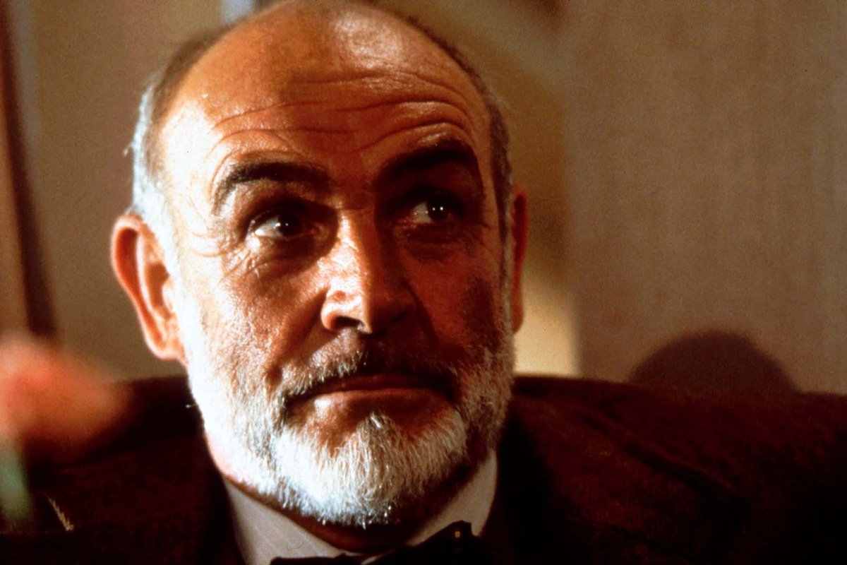 #LC Have you noticed that Connery's beard during his monologue is havier than the rest of the shots of the same scene? That beard was fake. The later insert was not even filmed in Tabernas, but months later when Spielberg decided to film some extra takes, as the motorcycle chase. pic.twitter.com/IneoE47fmm