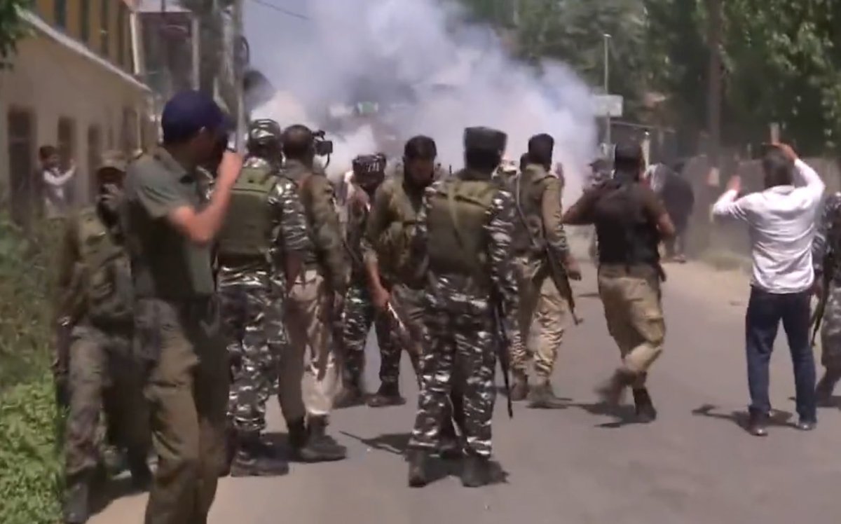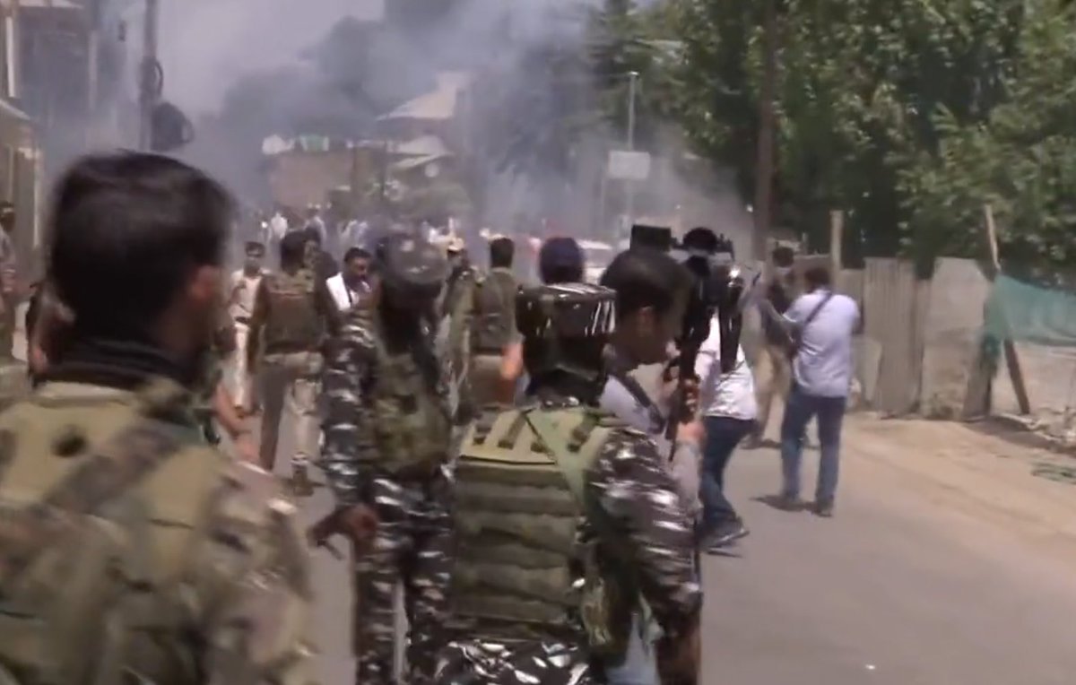#KashmiriPandit protesters at Budgam. Rather being with them in this hour of grief the head of the state is trying silent them with brutal force. Shame on#LG administration!! pic.twitter.com/nK5SmUaAHX