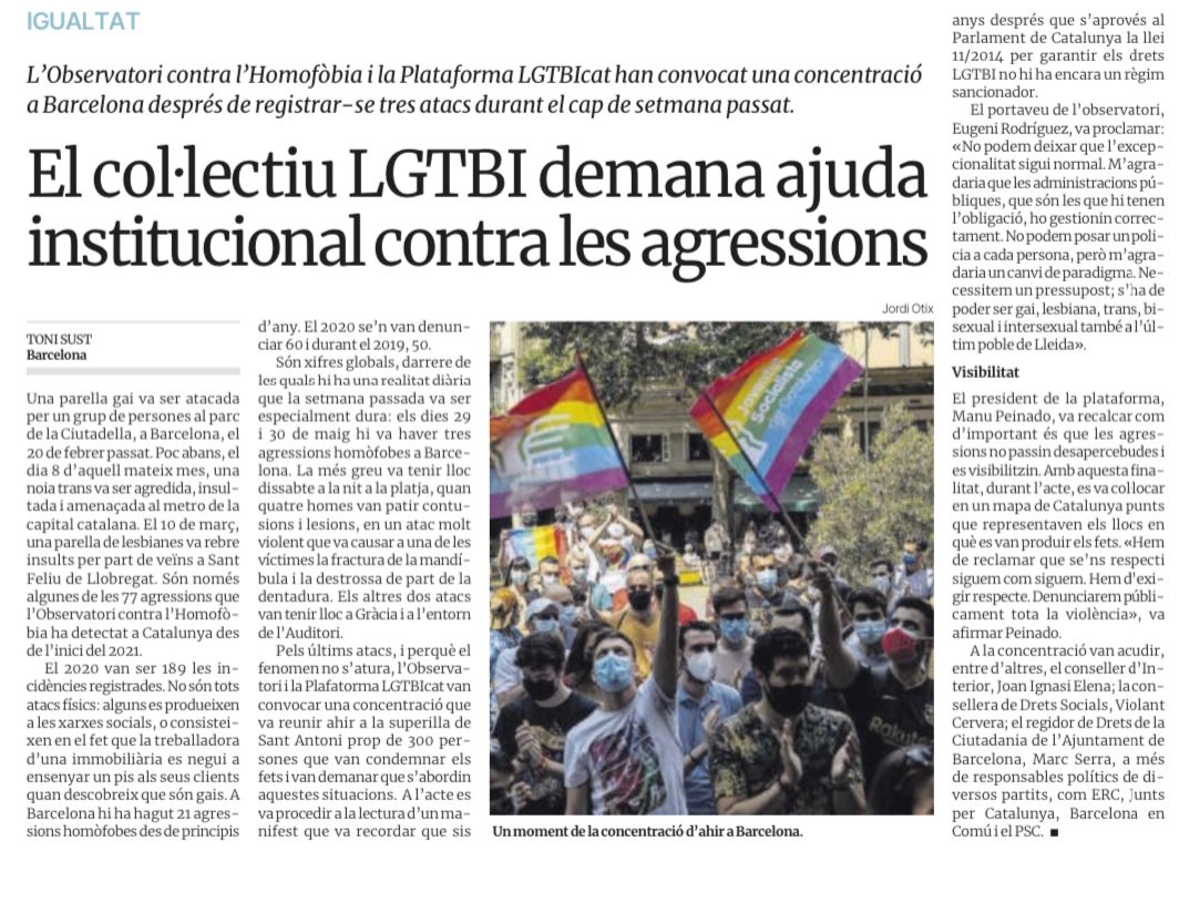 A la concentració convocada per @OCL_H i@LGTBIcat i acte "Cartografia Contra l'LGTBI-fòbia" per denunciar les violències cap el col·lectiu#LGTBI STOP#LGTBIfòbia!