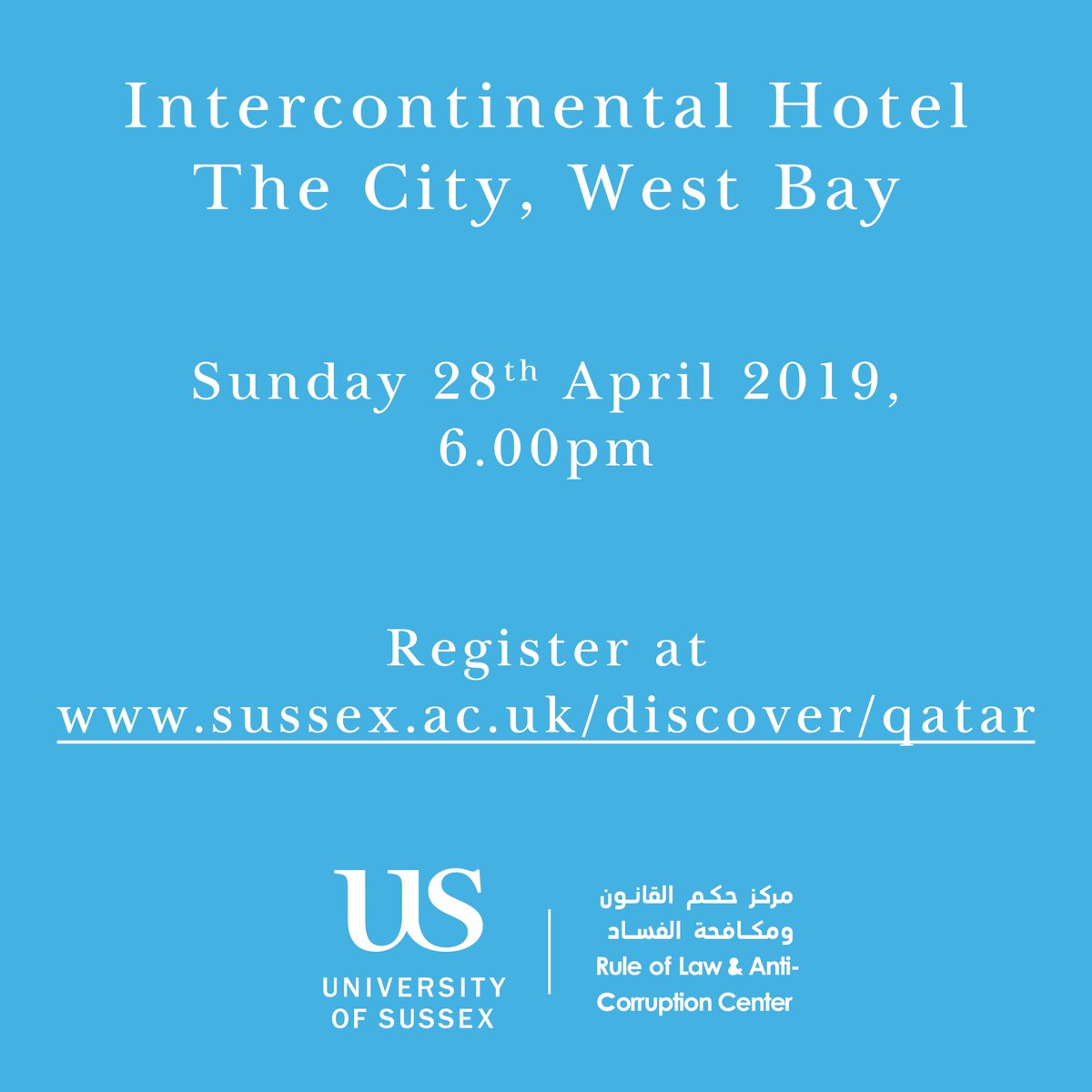#LLM Corruption, Law and Governance, a fully accredited UK Masters, taught in Doha by Sussex academics in partnership with ROLACC. Register for this event at http://www.sussex.ac.uk/discover/qatar .pic.twitter.com/0HLojQulLp