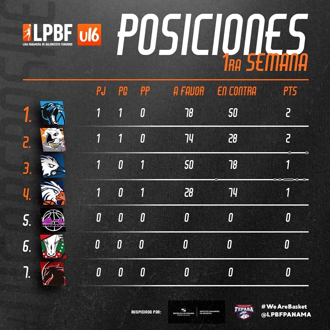 Así está la tabla, al finalizar la semana 1 en la Liga Panameña de Baloncesto Femenino