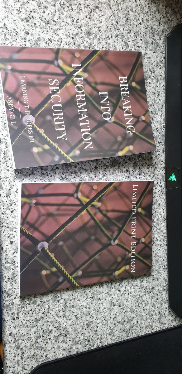 @ZephrFish’s book, “Breaking into Information Security” Another step for me on my journey into#InfoSec! Any pointers or helping hands welcome ;)#ltr101 pic.twitter.com/DORROszxOO