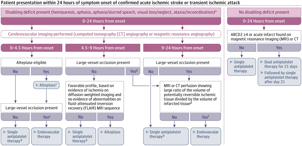 Some #LVO#stroke benefit from#MT up to 24h after onset. Diagnosis and Management of Transient Ischemic Attack and Acute Ischemic Stroke https://ja.ma/2O6XYBq@JAMA_current#MedTwitter#StrokeTwitterpic.twitter.com/Cud5KMXjXH