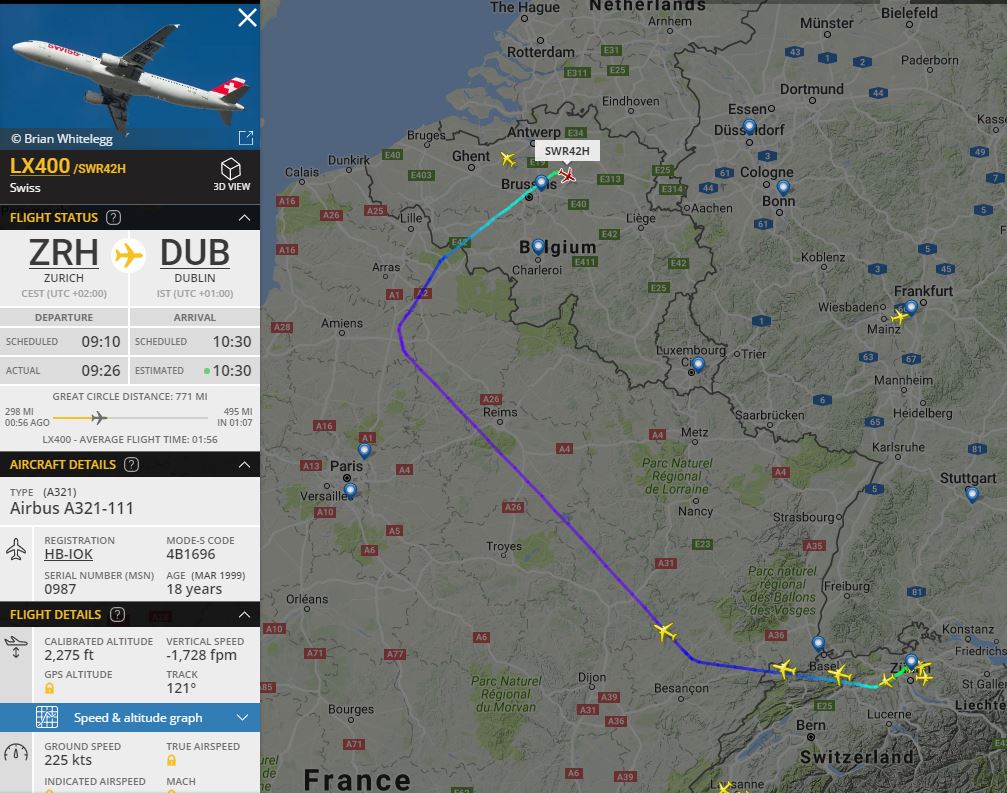 #LX400 ZRH-DUB is diverting to Brussels and inbound to BRU now pic.twitter.com/5IDo4fNtSB