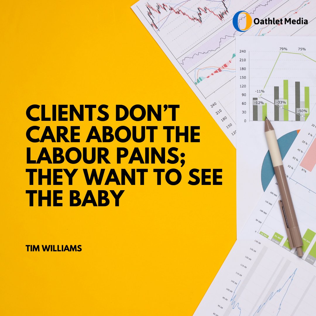 “Clients don’t care about the labour pains; they want to see the baby.” — Tim Williams