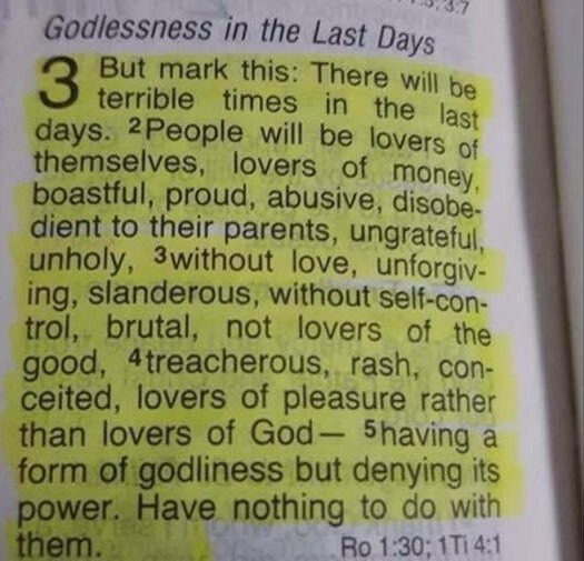 2 Tim. 3:1-2, 'But mark this: There will be terrible times in the