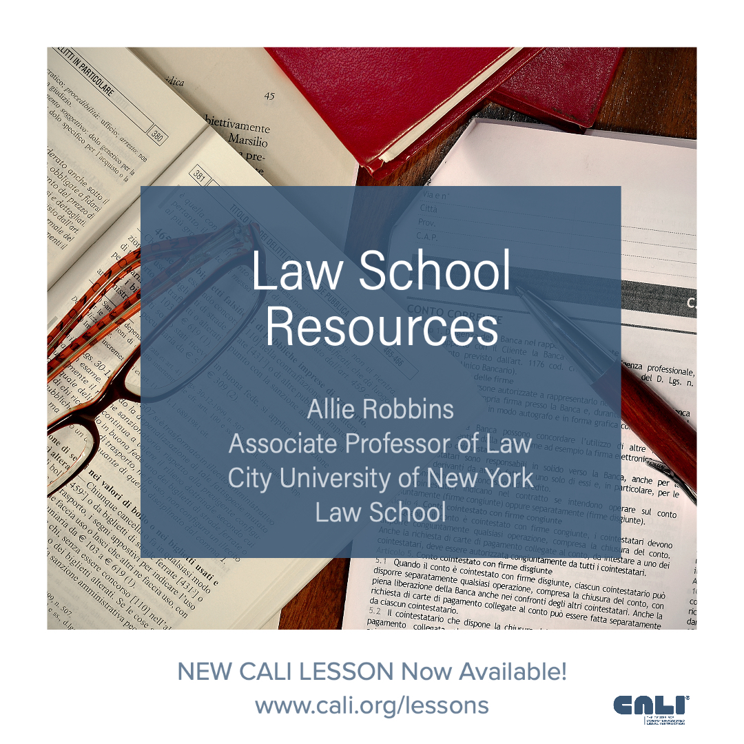 New CALI Lesson Available - Law School Resources.This lesson will address what to do if you face a variety of academic and life issues. It will also get you to begin thinking about post-graduation planning. http://cca.li/1xd