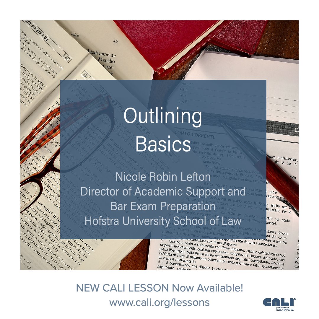 New CALI Lesson Available - Outlining Basics. This lesson teaches you why, when and how to create outlines when preparing for your law school exams. http://cca.li/1xe