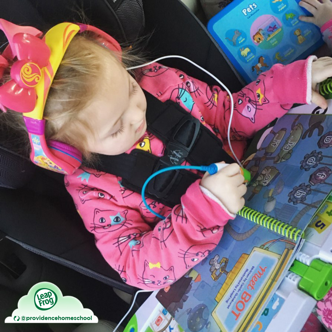 Road trip! Love these pics from http://instagram.com/providencehomeschool …, with her kiddos enjoying their LeapFrog books on the journey. How do you like to keep everyone occupied on long trips?