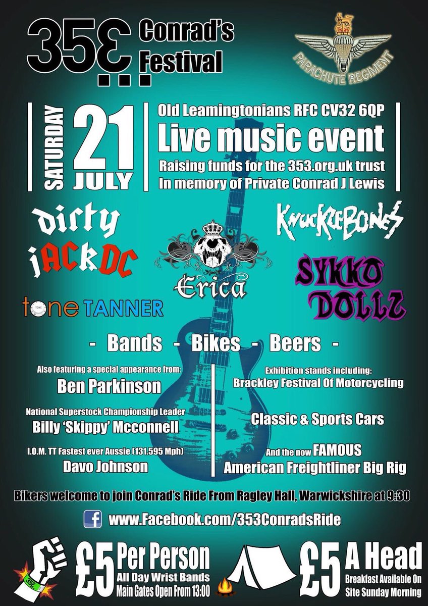 @conrad353 The event is held at@olrfc Old Leamingtonians Rugby Football Club , Bericote Road, Leamington Spa CV32 6QP. Site opens from 1pm.@3_5_3#GetBusyLiving#LestWeForget
