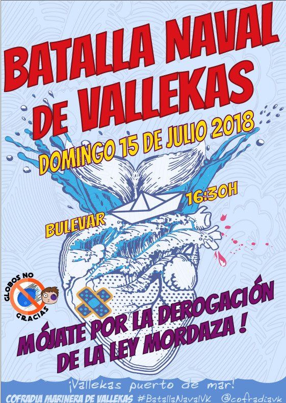 #Vallekas, tierra humilde, libre y luchadora, que hoy celebra una batalla por la cultura, los derechos y la libertad. Mójate por la derogación de la#LeyMordaza 15 de Julio 16:30h ¡ Viva la#BatallaNaval !
