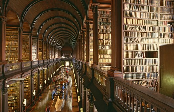 La Library of Trinity College di Dublino, la biblioteca ospita in tutto 4,5 milioni di libri, solo nel lungo corridoio di 65 metri ci sono oltre 200 mila volumi.