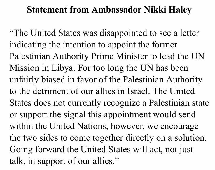 US Ambassador to UN Nikki Haley is blocking appointment of former PM Salam Fayyad as envoy to