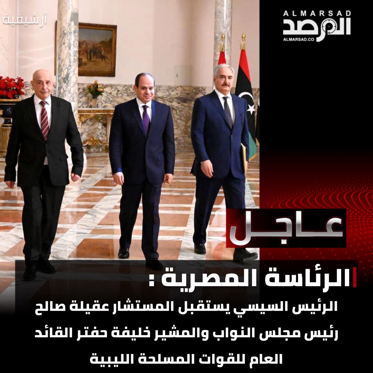 #Sisi and Major General Abbas#Kamel, head of#Egypt's General Intelligence Service, received Chancellor#Aguila Saleh, Speaker of Libyan Parliament, and Field Marshal Khalifa#Haftar, Commander-in-Chief of the#LNA, in#Cairo.#Libya pic.twitter.com/tJAZRAYJrG