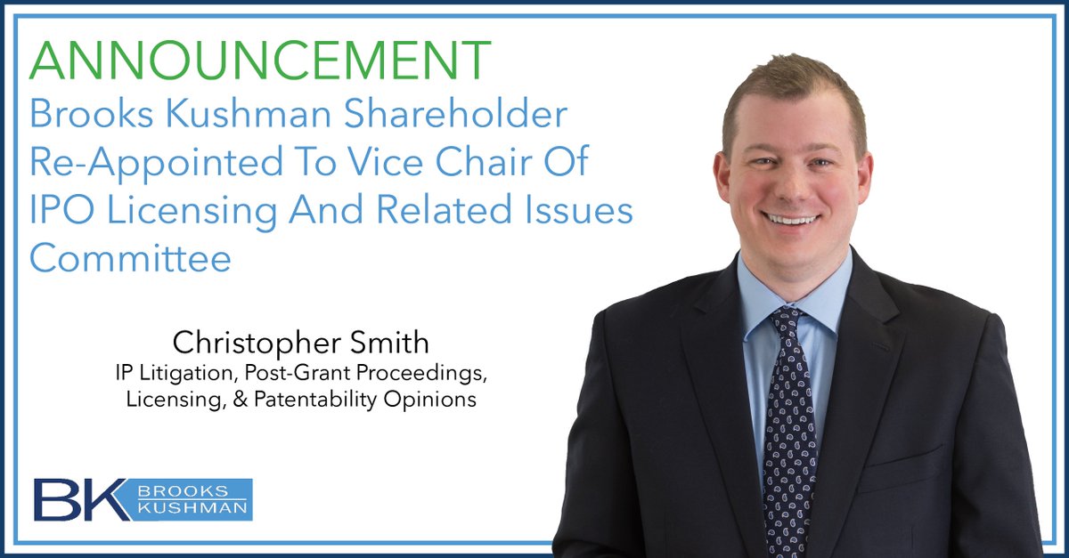 Brooks Kushman Shareholder Christopher Smith was re-appointed as the Vice Chair of Licensing and Related Issues for the