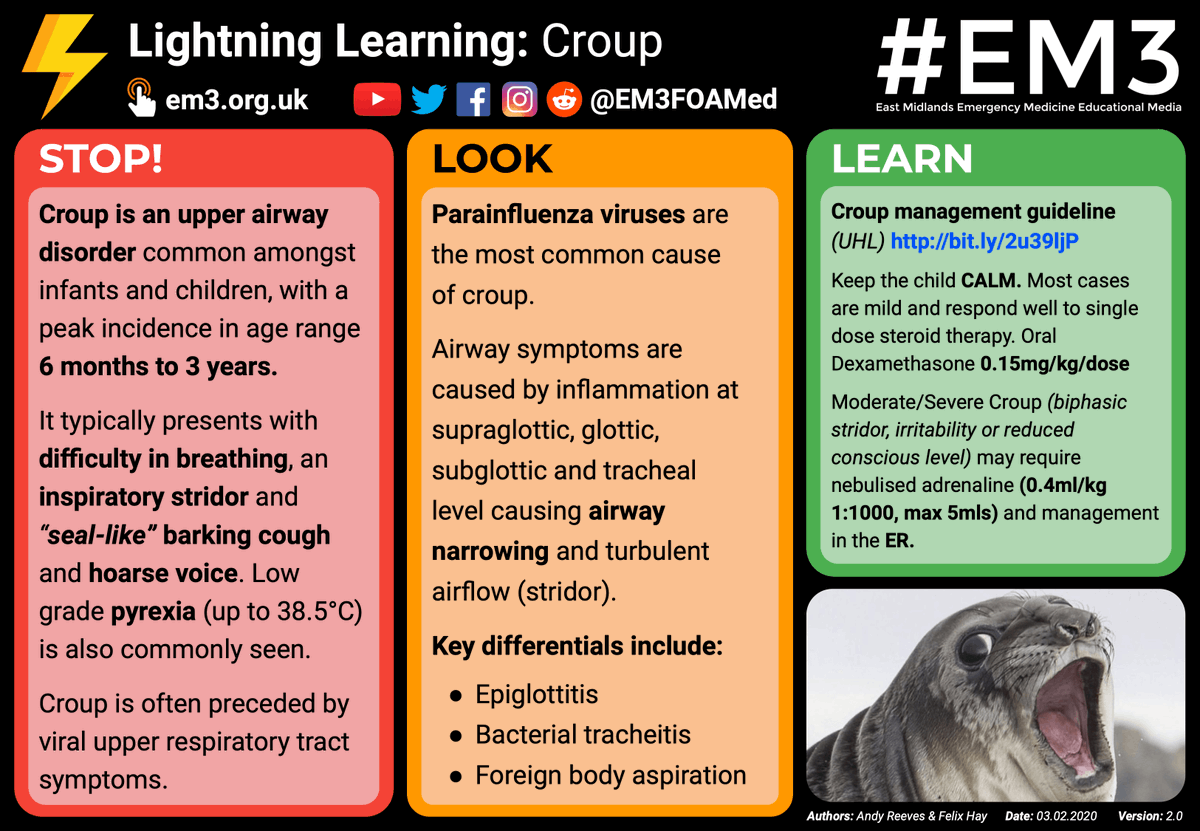 #LightningLearning on Croup this week! Find out why croup is an upper airway disorder common amongst infants and children - indicated by a "seal/dog-like" barking cough