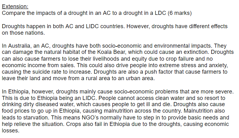 Thomas D, year 11 - demonstrating mastery of extended writing in geography. This was an optional extension, so it’s great to see our students striving for top levels.