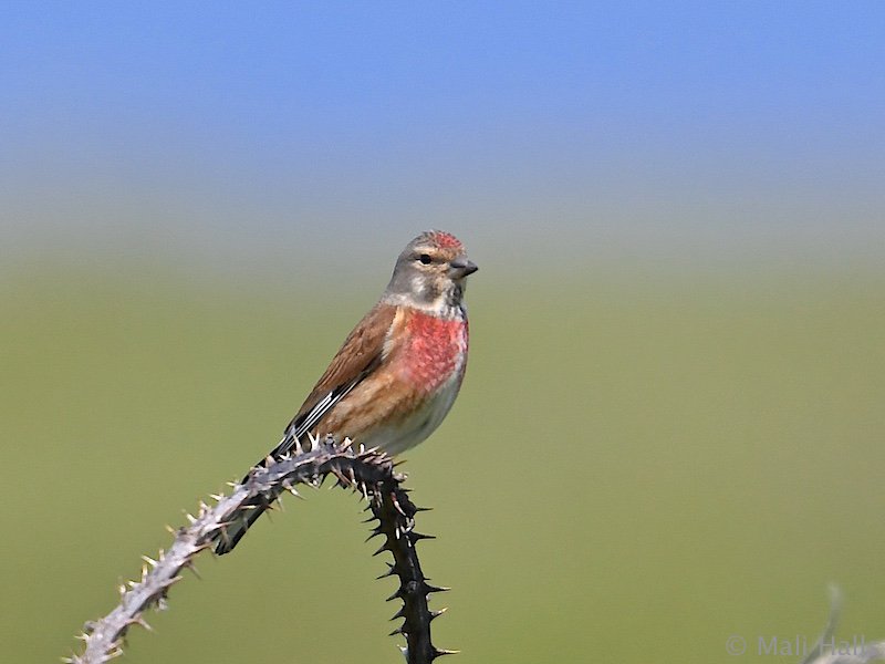 #dorsethour. This male#linnet is looking fiery in breeding plumage. Lovely photo via CHOG member Gary Foyle. pic.twitter.com/3oRKaU4Sbj