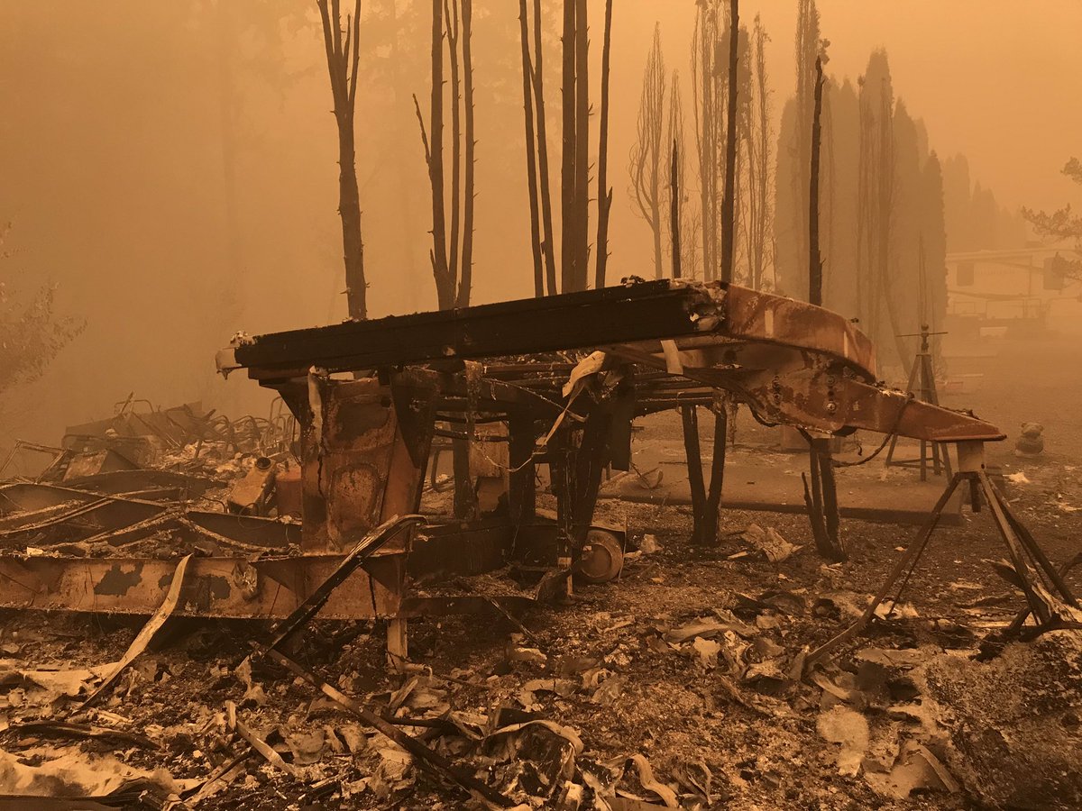 No filters. No editing. This is what’s left of some of those trailers and a new bathroom that was recently built here. The smoke is incredibly thick and irritating. Despite all of that, there are still a few people staying here