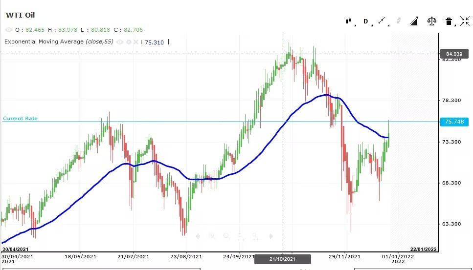 WTI-OIL ANALYSIS -Oil (WTI-Jan Exp) slips almost -1.18% last week on Omicron disruptions on both sides of the Atlantic as thousands of flights got canceled in Christmas/New year holiday.